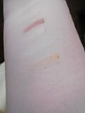 腕にためしぬりしてみました。まずはフラッシュなし。携帯カメラなんでうつりがあまりよくないかも。