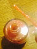 赤っぽいオレンジにたくさんラメが入っているカラーです。